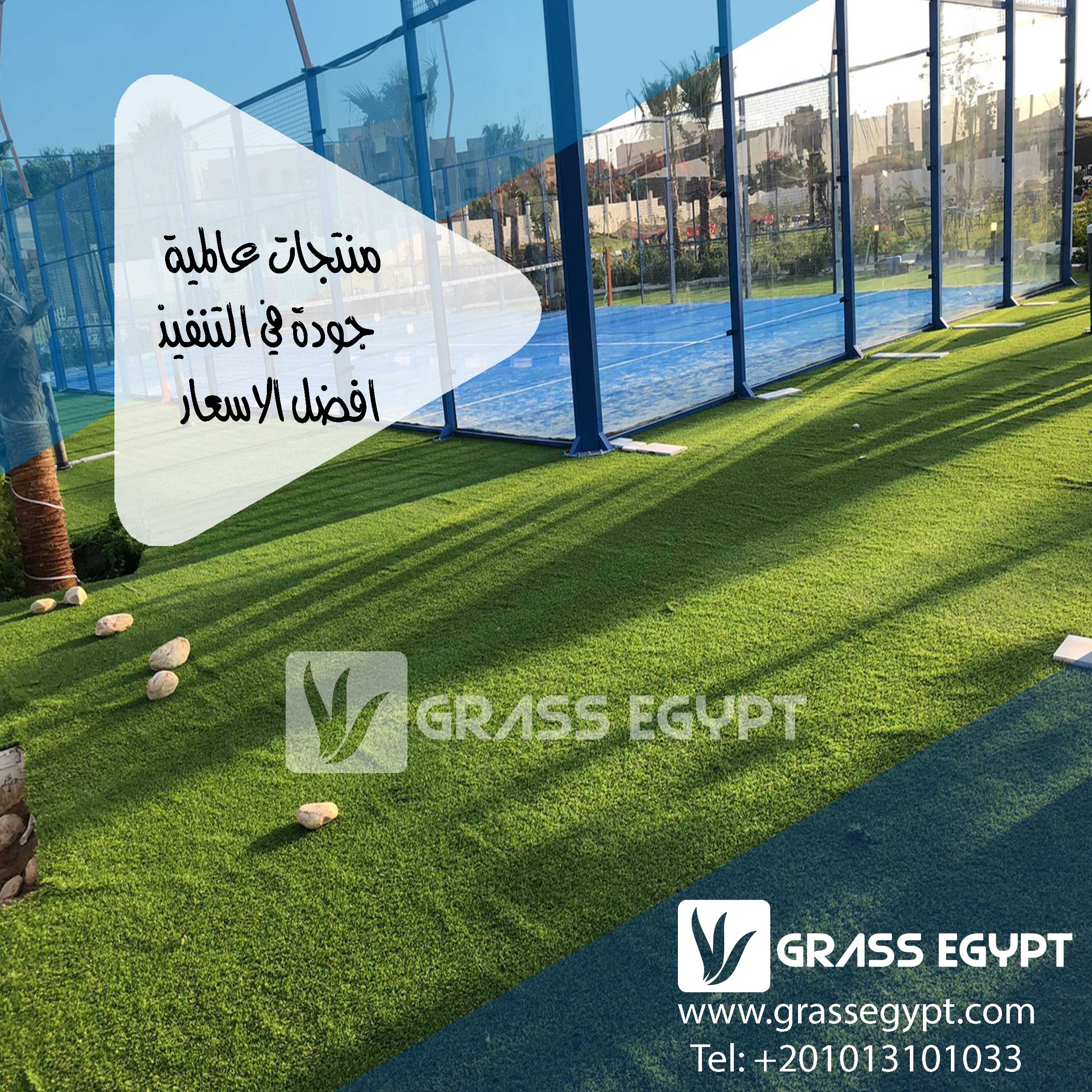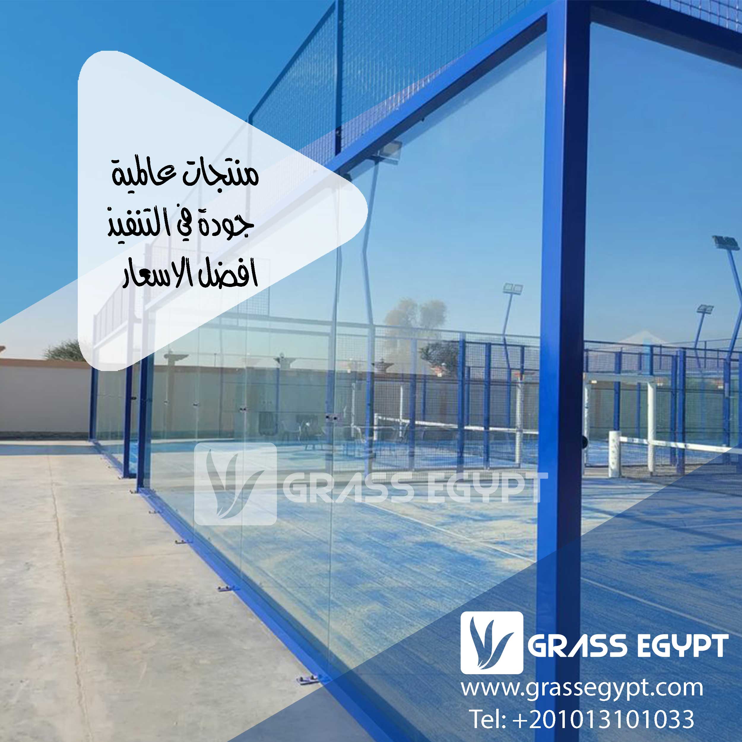 خامات جودتها عالية ومعتمدة: بنستخدم أنضف أنواع النجيل الصناعي والزجاج المقاوم للصدمات.